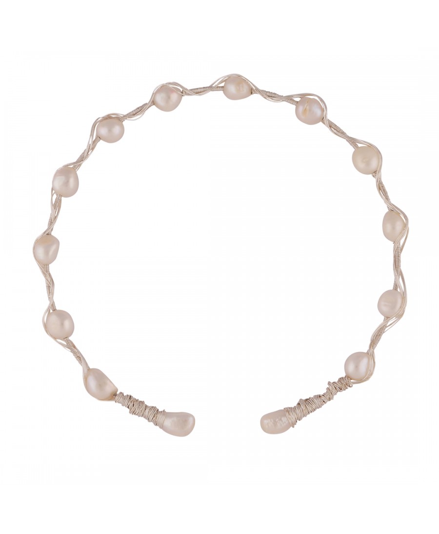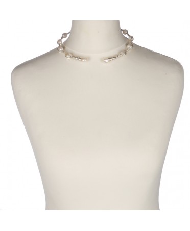 14K White Gold Filled Hand Made Natural Baroque Freshwater Pearl Choker