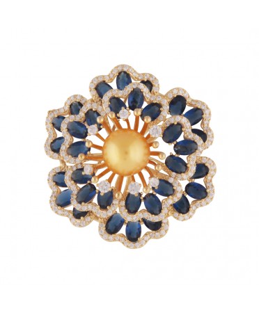18K Gold Filled 11 - 12mm natural freshwater golden pearl decorated with high quality with blue zircons.