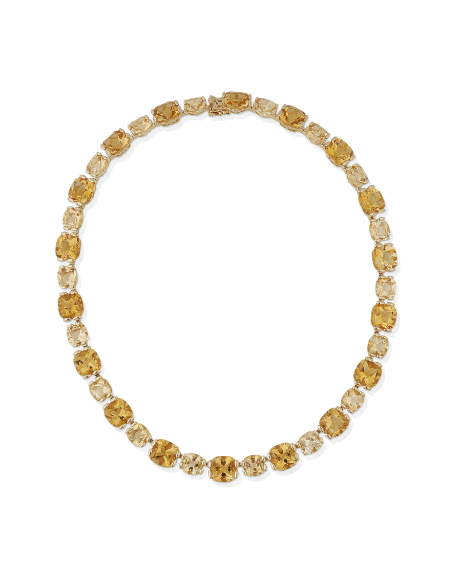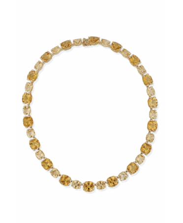 This luxurious necklace is a beautifully set oval cut champagne citrine individually claw set in a solid 18k yellow gold basket.