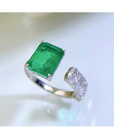 Trendy Emerald Colour Zircon Sterling Silver Open Ring