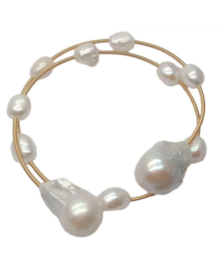 Natural White Freshwater Baroque & Keshi Pearls Adjustable 8” Bracelet
