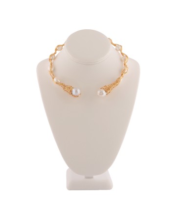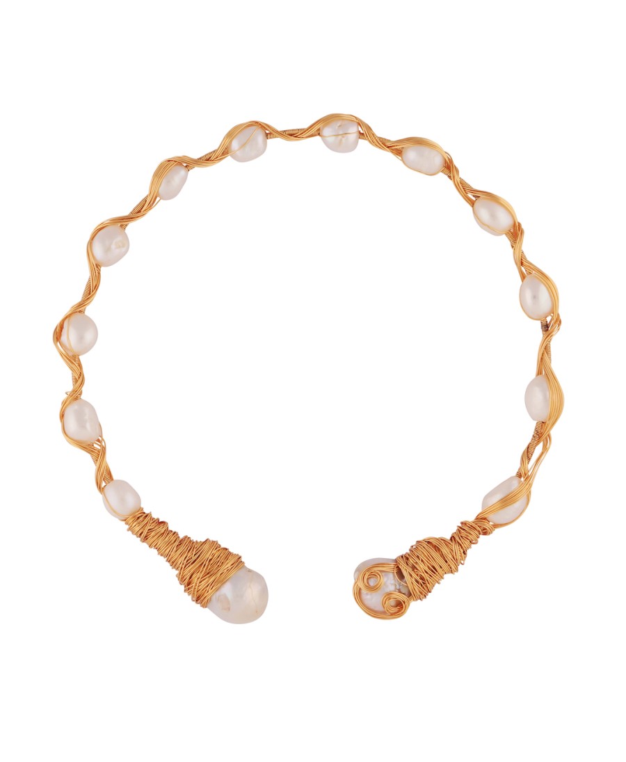 14K Yellow Gold-Filled Handmade Baroque Freshwater Pearl Choker Set in a Weave of Gold