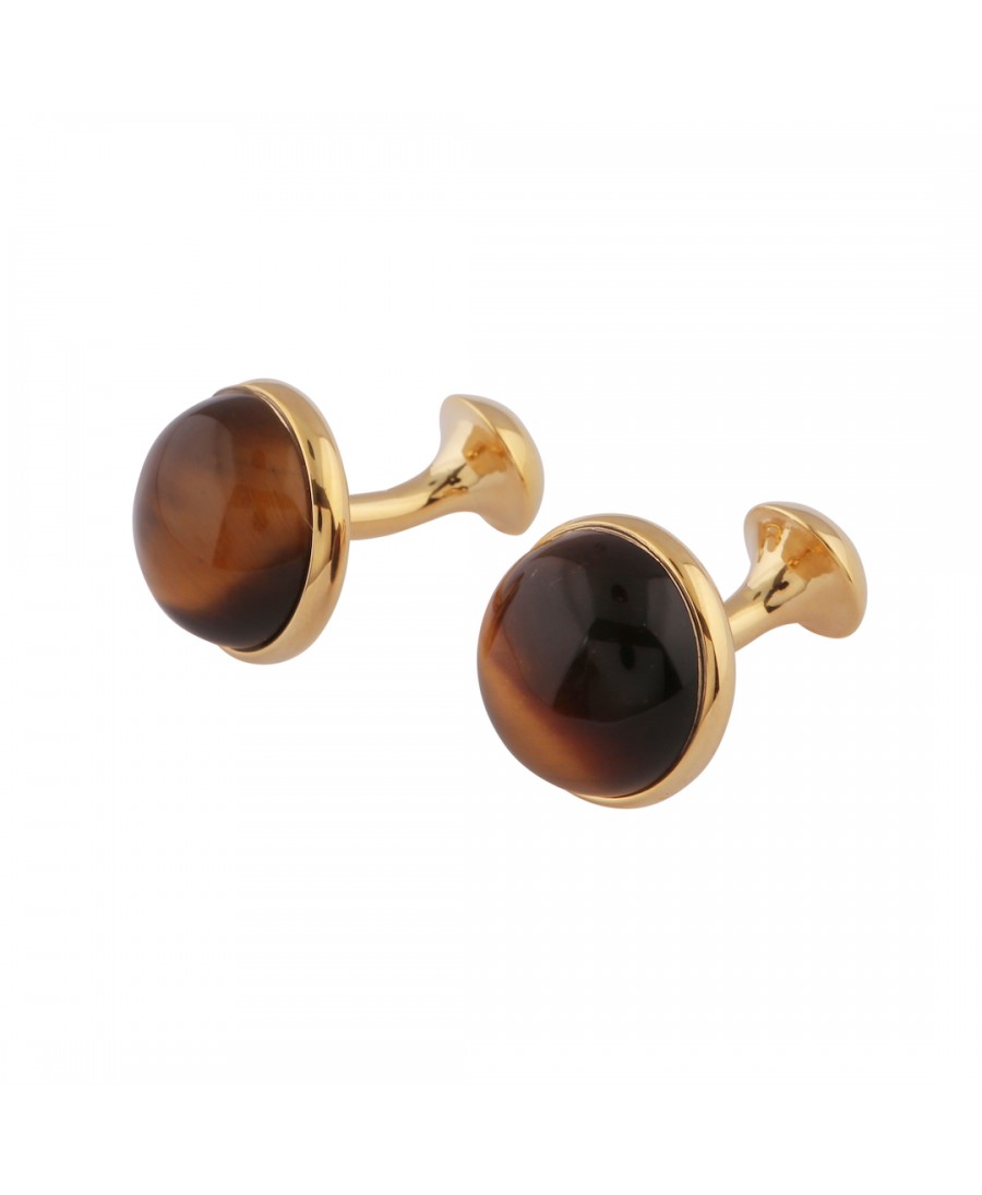 Round Tiger Eye Quartz Gold Plated Stainless Steel Men’s Cufflinks