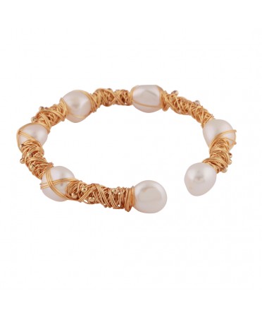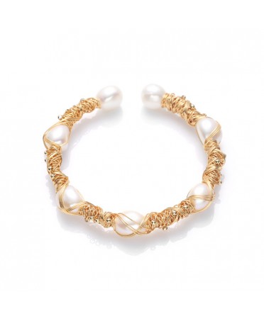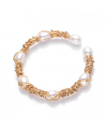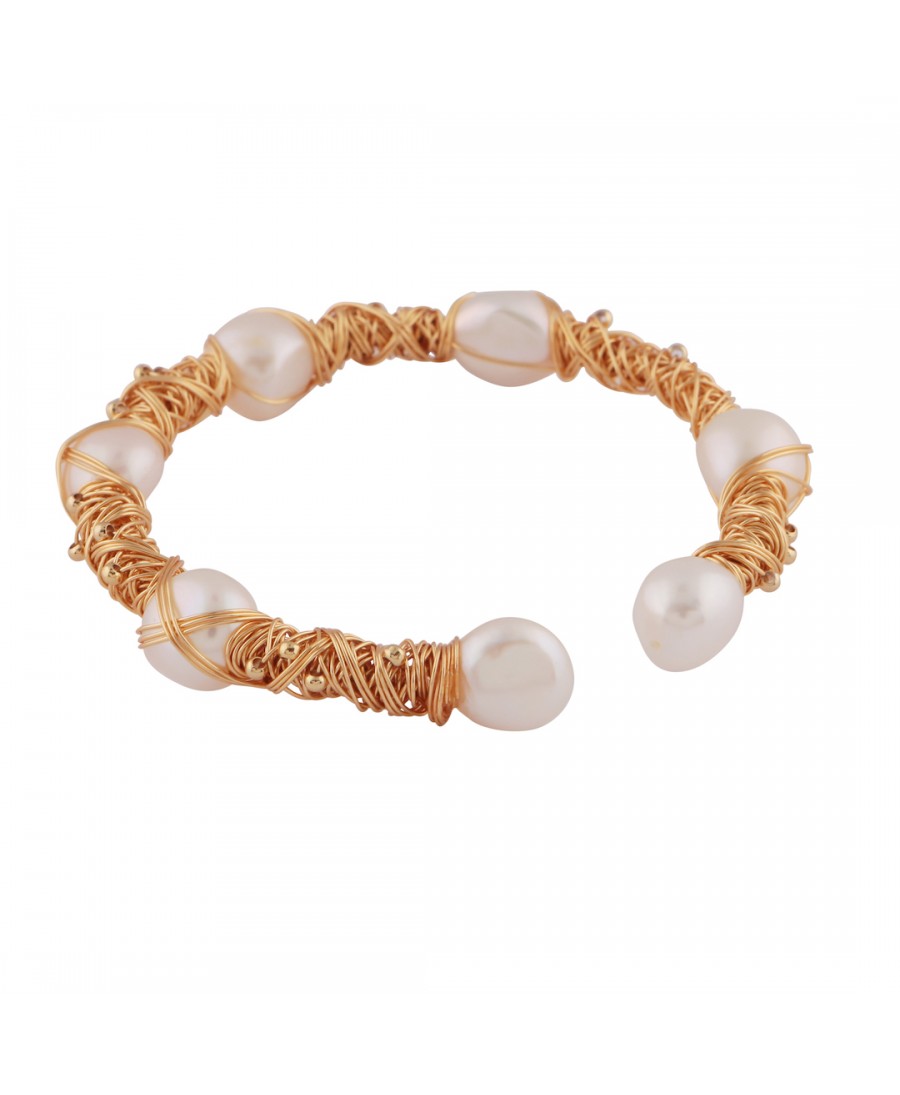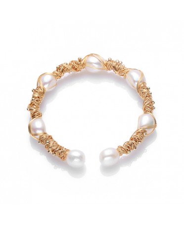 14K Yellow Gold Filled Freshwater Pearl Open Bangle, 18cm Length