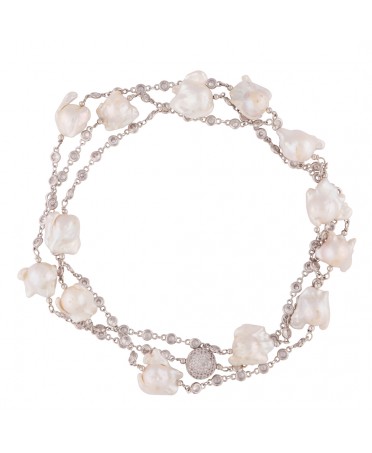 50 inch Long, White Baroque Freshwater Keshi Pearl Endless Necklace Set In 14K Gold Filled Chain of Zircons.