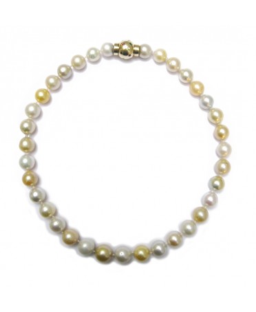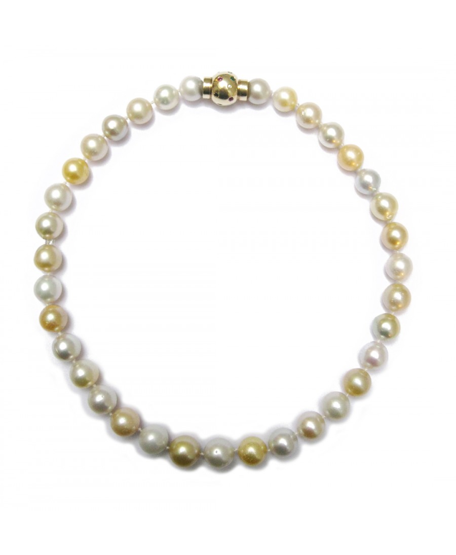 12mm, 18 inches Round Gold & White South Sea Pearl Necklace With 18K Yellow Gold Multi Gem Clasp